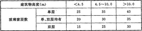 F.0.6 生產(chǎn)廠房、倉庫、公用輔助建筑物,加熱由門窗縫隙滲入室內(nèi)的冷空氣的耗熱量占圍護(hù)結(jié)構(gòu)總耗熱量的百分率可按表F.0.6確定。