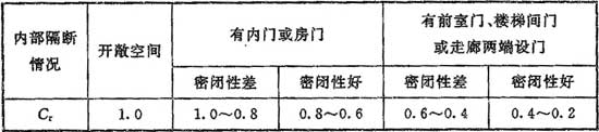 n——單純風(fēng)壓作用下,滲透冷空氣量的朝向修正系數(shù),按本規(guī)范附錄G采用;