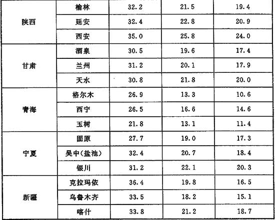 5  中國河流年均水溫的地區(qū)分布形勢(shì)大體與氣溫一致。河流年均水溫略高于當(dāng)?shù)啬昃鶜鉁?,差值一般?℃~2℃。但當(dāng)高山冰雪融水在河流補(bǔ)給中占主要地位的地區(qū)則相反,年均水溫低于氣溫1℃~2℃。中國河流水溫的年內(nèi)變化過程,大部分地區(qū)均為在春、夏增溫階段,水溫低于當(dāng)?shù)貧鉁?秋、冬降溫階段,水溫高于當(dāng)?shù)貧鉁?。采用蒸發(fā)冷卻空氣處理方式,冷卻水采用直流式地表水,可降低被處理空氣溫度,此時(shí)地表水即為天然冷源。