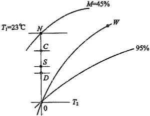 圖3 在焓濕圖上表示的夏季空氣處理過(guò)程