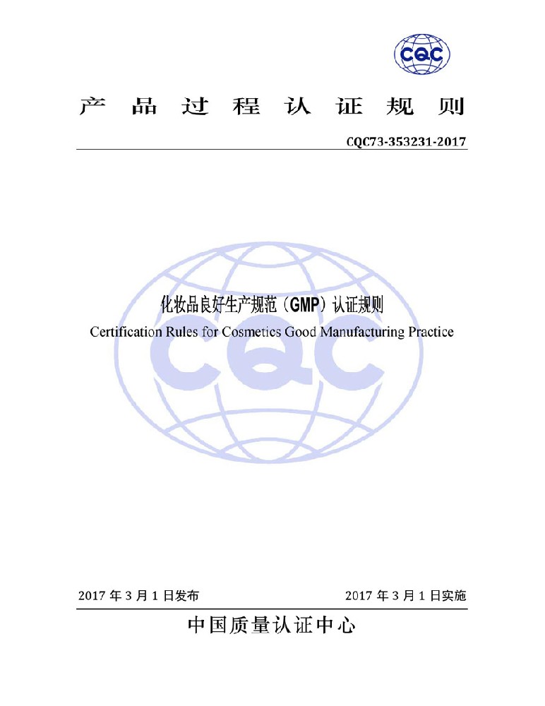 轉(zhuǎn)自:中國質(zhì)量認證中心:化妝品良好生產(chǎn)規(guī)范認證(GMPC)